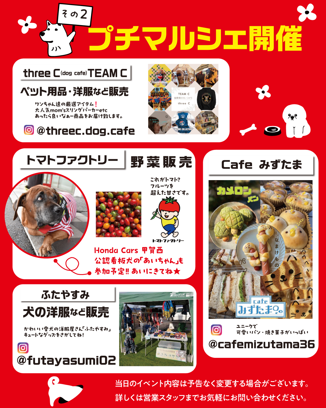 当日はたくさんのわんちゃんたちが遊びに来てくれることが予想されます。